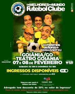 O grupo de humor Os Melhores do Mundo se apresenta em Goiânia nos dias 07 e 08 de fevereiro com o espetáculo “Os Melhores do Mundo Futebol Clube”. As sessões acontecem no dia 7, às 19h, e no dia 8, às 18h, no Teatro Goiânia, no Setor Central.